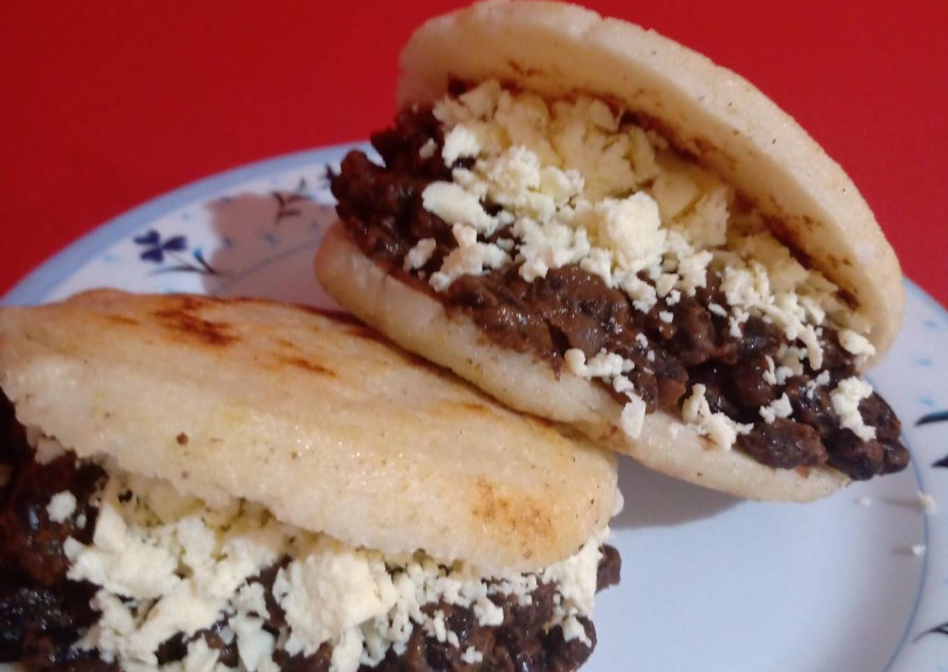 Instructions to make to make Arepa dominó a mi manera veggie y saludable!