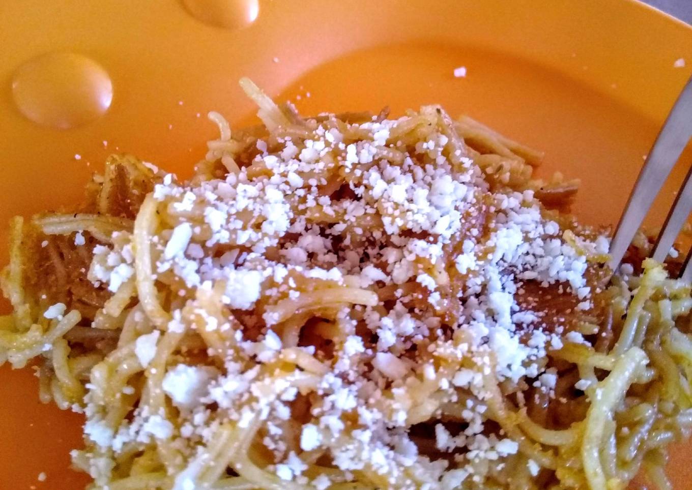 - Dorar el fideo en un poco de aceite, agregar la salsa (si hace falta agua agregar otro poquito de agua) y dejar que se cocine a fuego bajo hasta que este suave la pasta de fideo y el agua se haya consumido.