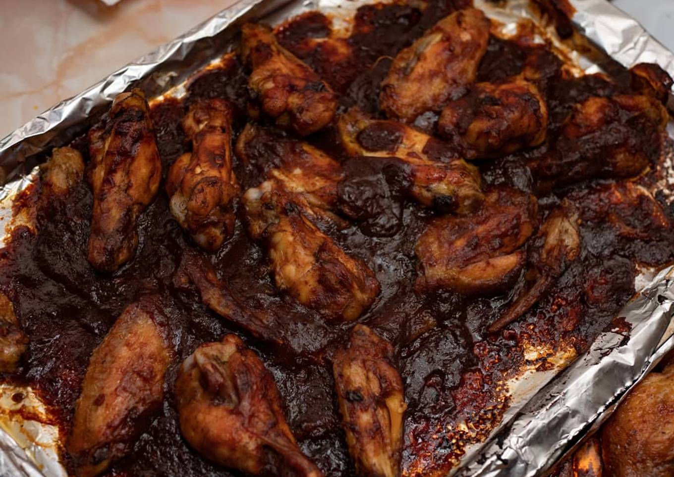 - Ahora una vez pasado el tiempo mencionado en el paso 3 saca las alitas y báñalas con la mezcla de tamarindo, después mete las alitas al horno durante 10 minutos.