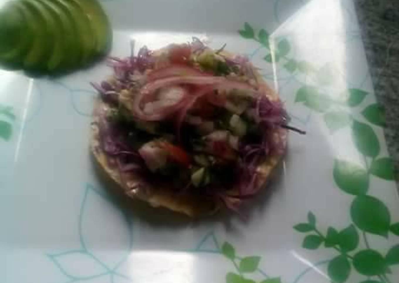 - Cortamos el aguacate en medias lunas finas, ponemos mayonesa en la tostada y un poco de col, el ceviche al gusto y ponemos un poco de habanero con cebolla y a disfrutar