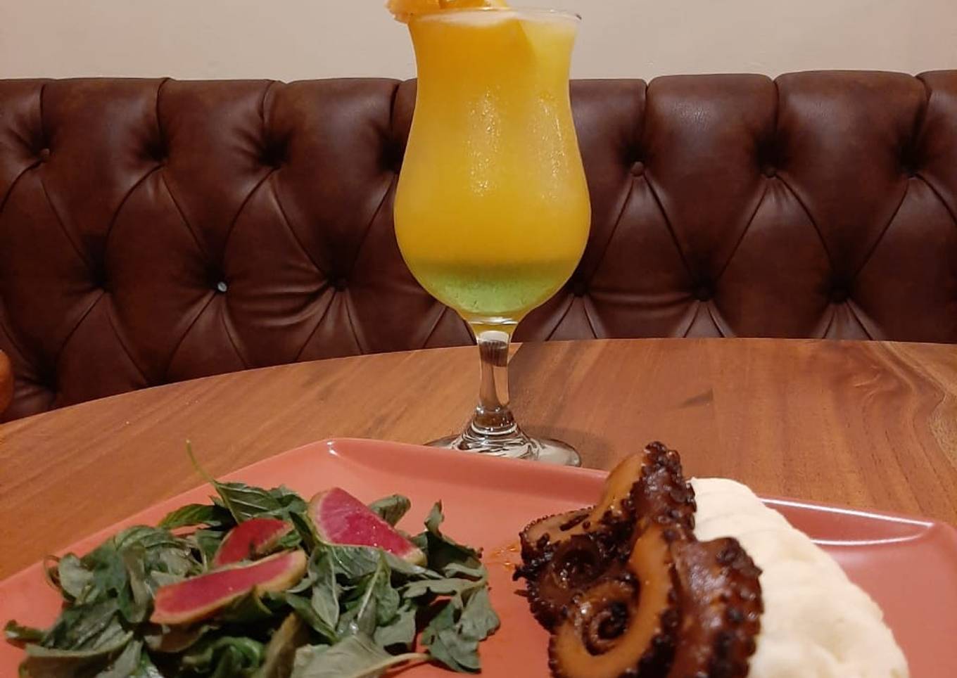 Les presento mi plato fuerte, pulpo en salsa de chintextle y como bebida luces de la Habana.