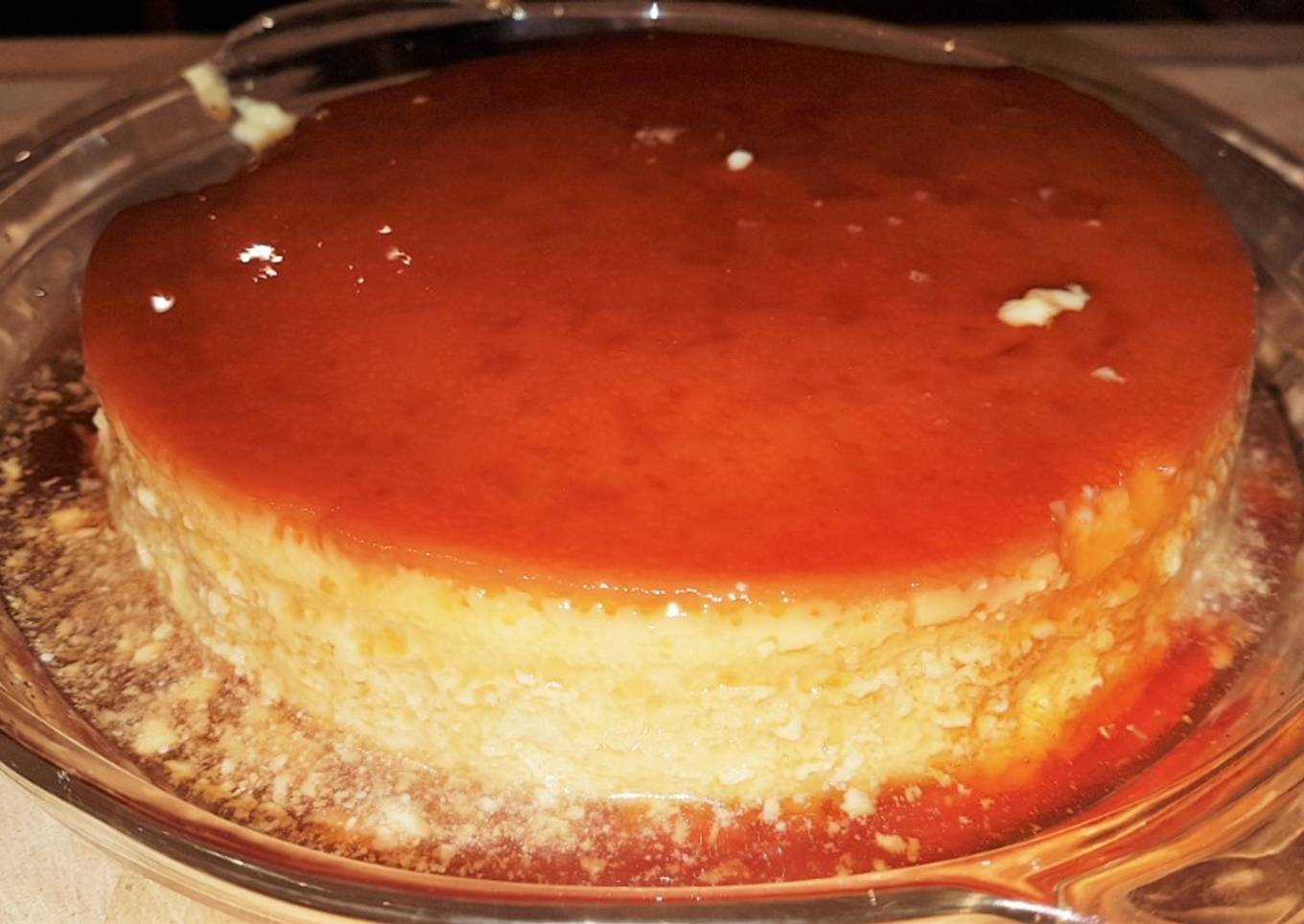 - Con mucho cuidado, girar el refractario para cubrir bien toda la base y una parte de los costados del refractario. Dejar enfriar unos 20 o 30 minutos antes de agregar la mezcla para el flan