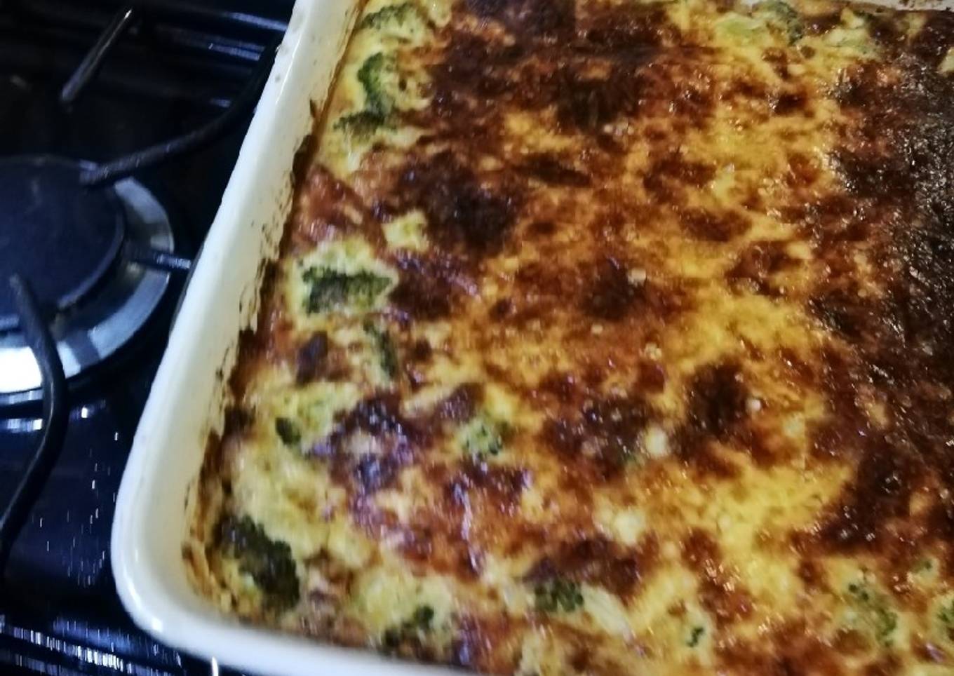 - Una vez sofrita la cebolla se agrega el brócoli en trocitos y ya que suavice se pone la mezcla en un refractario o molde para hornear engrasado