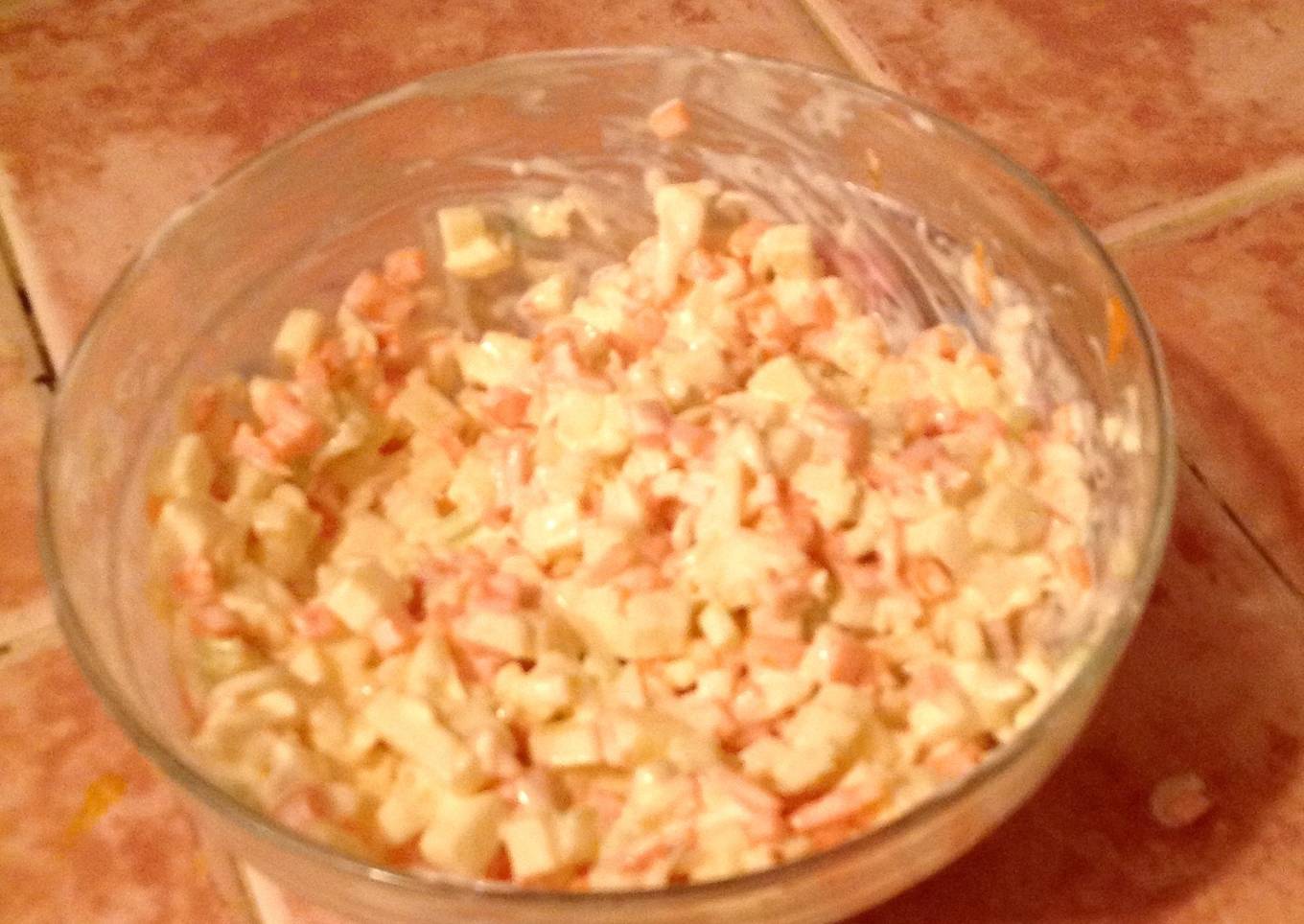 Esta receta la cree inspirada en mi receta de ensalada de surimi (publicada en esta página) con los ingredientes que tenía en el refrigerador, es fresca, crujiente, deliciosa, ideal como guarnición para todo tipo de carne. Como todas mis recetas fácil y rápido de preparar, muy económica.