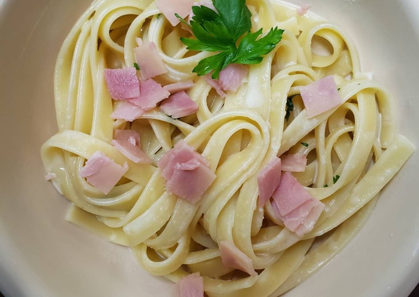 Fettuccine con crema y jamón