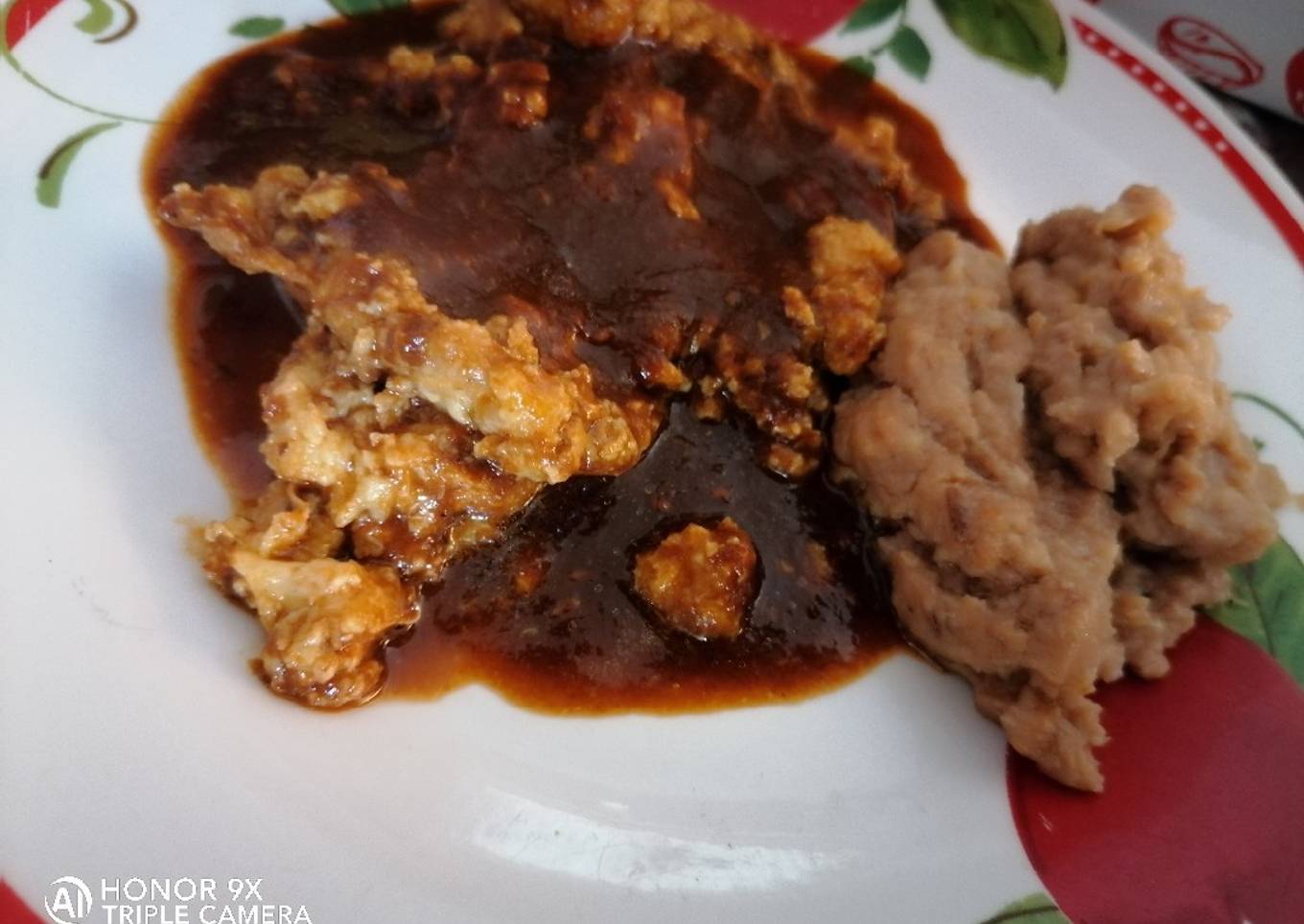 - Ya que está lista la salsa bañamos el huevo que quede aguadito el chile pues así podemos disfrutarlo con unos frijoles.