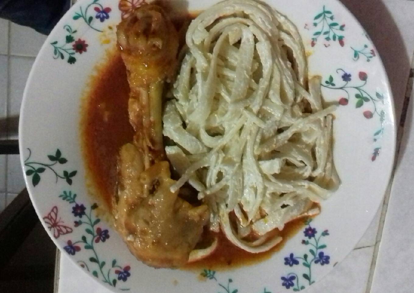 Lo acompañé con espagueti blanco, hecho con media crema y queso crema... sofrito en mantequilla.