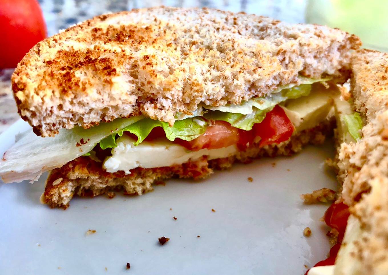 - Pon el queso, el jitomate y la lechuga. Cierra el sándwich parte en dos y disfruta!