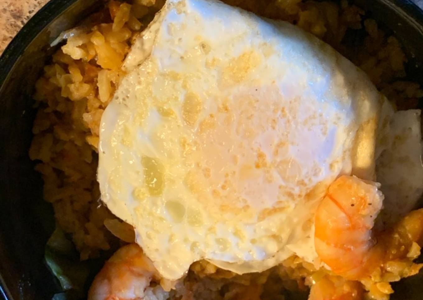 Hello everybody, it's Brad, welcome to our recipe page. Today, I will show you a way to prepare a special dish, Arroz chino con camarones y un huevo estrellado. One of my favorites. For mine, I am going to make it a bit tasty. This is gonna smell and look delicious.